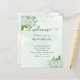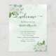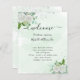 En vattenfärgad bakgrund av grönten, dekorerad med vita blommigtar, eukalyptus greenery och faux glitter-damm. Anpassa och lägga till namn och tidslinjen för bröllopsdagen.