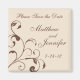 Skicka den här Spara datumpåminnelsemagneten tillsammans med ditt meddelande från bröllop för att hjälpa dina vänner att komma ihåg din bröllopsdag. Den här bröllop-påminnelsemagnet har bruna snurrar och krämer på en krämbakgrund. Du kan enkelt anpassa texten från produktordersidan. Se till att kolla in bröllopsinbjudningarna, anpassningsbar postage frimärke och andra samordnande produkter i vår Blommigt Curls Bröllop Collection - Brown.