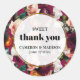 En dekal för elegant och finare bröllop med en blandning av vackra sommarblommor på vit och magenta bakgrund och anpassade svart typografi på genomskinlig vit och guld ram.