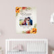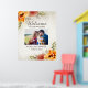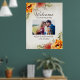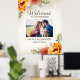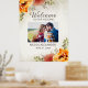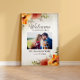 Elegant bränd orange akvarell blommig välkomstskylt för ditt höst/ höstbröllop. Tecknet är personligt anpassat med ett speciellt förlovningsfoto och text, "Välkommen till vårt bröllop". Brudens och brudgummens namn och deras bröllopsdatum är tryckt längst ner.