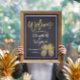Välkomstskylt Bröllopsfest Sign Poster Mallar - Elegant Faux Guld Folie Pineapple Par på Marinblå Blommig Damask Linne Bakgrund.
