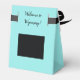 Dessa söta små karta-favoritboxar är perfekt för ge gäster när de checkar in på deras hotell. Fyll med små behandlingar de kan njuta av innan festligheterna börjar. Eller skicka hem dem från mottagningen med midnattssnack. Du kan ändra bakgrunden till färg så att den stämmer överens med ditt bröllop-tema.