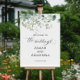 Bröllop välkomsttecken och elegant vattenfärgsgrön poster