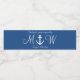 Vattenflaskans etikett för marint sjöankare i bröllop. Personlig elegant vattenflaska mall med förankringskonstruktion för båt/frakt. Snyggtens skripttypografi för namn av brud och triom och tack för ditt budskap. Använda som klassad bord-dekoration eller tack för gästerna vid bröllop/brudens sida. Logotyp omfattar namn eller monogram plus datum för giftermål. Klassdesign med anpassadets bakgrund färg. Perfekt för destinationsbröllop. Tack för att du gått med vår speciella dag. Tema för havsstranden.