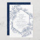Bröllop vid marin blå och vit geometrisk Blommigt Inbjudningar