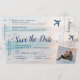 Boarding Pass Flygbiljett Strand Destination Bröllop Spara datum-kort med en romantisk tealblå, akvagrön, persiko och gul solnedgång eller soluppgång över en sandig ocean kustlinje med turkost vatten. Använd Zazzle Design-verktyget för avancerad redigering av malldesignen, till exempel ändring av textfärg, teckensnitt och placering samt kortets bakgrund och flygplansfärg. Kontakta mig för koordinerande artiklar du söker, eller använd "överför denna design" för att skapa din egen på valfri Zazzle-produkt.