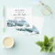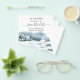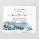 Ett trendig bröllop spara datum. En vit bakgrund med ett vinterlandskap täckt av snö. Anpassa och lägg till ett datum, ställe och namn. Spara datum skrivs med ett modernt handskript i stil med dekortecken.