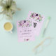 Observera att det här Spara datumet är pappert och mycket tunt. Kuvert ingår inte. Om du vill ha tjockare Spara datumkort (samma design) kan du besöka vår butik. En modern och elegant Spara datum för ett bröllop. Vattenskärkta violett, lavendelbakgrund, svart text. Dekorerad med violett och lila blommor. Anpassa och lägg till ett datum och namn. Texten: Spara datumet skrivs med ett stort trendig-handskript i stil. Tillbaka: lägg till URL:en på webbplatsen bröllop för mer information.
