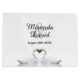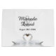 Två vackra svanar i kärlek på ett sjö som böjer sig för varandra och bildar ett hjärta. Vit elegant bakgrund. Mall för namn och datum. Black brev. Ett par från svan håller sig ihop för livet, så de är perfekten av kärlek. Perfekt för en bröllop- eller bröllop-årsdag som gåva till paret eller som en favoritpåse.