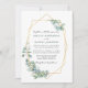 Modern Elegant Watercolor Eucalyptus Greenery, Guld Geometric Ram bröllopskort
