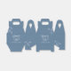 Den här designen har en bröllop-förmånslåda, en enkel dammig blå mall, en blommigt med elegant vattenfärg, grönt löv, ett botaniskt löv med löv vrickblått, en minimalistisk modern design, en bröllopskorgen med en brud och ett eget namn, med ett typsnitt för snyggt-trendig-kalligrafi, med kreativets förenklade typsnitt, en förmånshandbok för bröllop, ett bröllop godis vid behandling av efterrätt