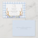Webbplatskort i bröllop | Avslappnad Stil Monogram, Pawarded Blommigt Blue Bukett med rosor Antlers, utlöst av ett sött blått gingham gräns - färg, koordinerat bakåt av kortet - Originalteckningar skapat för BarefootBride™ av © WhimsicalArtwork™ Detta ingår i en matchande Möhippa Bröllop Stationery Suite och Baby Shower Suite All Text Inklusive font stilar och färger är anpassade - We använder ett medelstort grått-teckensnitt - om du behöver hjälp, kontakta mig gärna.