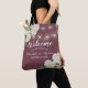 Välkomsthälsning och Tack Gift Bags-mallar - Elegant Vit underbar vattenfärg Hydrangea Flowers och String Ljus på Burgundy Red Background. En Perfekt för din stora dag! Alla textstorlekar i Stil, Färg kan anpassas efter dina behov.