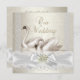 Bröllop White Svanar Cream Pearl Snöre Damask SQ Inbjudningar