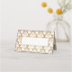 Chicens vikande platskort med en guld glitter-tittar och vit blommigt-dämpad bakgrund. Bilder av en textplaque med kanter i guld på framsidan är redo att anpassa sig för hand för varje gäst vid bröllop.