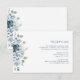 Bröllopekort för dammblått vattenfärgat Blommigt. Det här moderna bröllopsmottagningskortet har vackra, handmålade vattenfärgsflottor, dammblått och kräm ro med sage grönt löv. Detta är en del av Dusty Blue Blommigt Bröllop-samlingen.