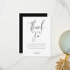 Ett enkelt svartvitt tack från bröllop med ett skript med svart snyggt i elegant och ett tack till gästerna.