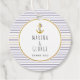 Guld, marinankare och rand nautiskt bröllop gynnar märkre. Den här eleganten och den moderna utformningen av ett bröllop på stranden har vågrät rand i marinblått och guld, medan texten tillsammans med ett ankare i guld glitter ligger i ett guld-cirkulärt ram.