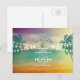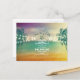 Den vackra stranden sparar datumvykorten med modern skripttypografi, årstidsförskjutning, stjärnfiskens kalligrafi och en sträng av ljus design. Snyggt solnedgång i havsområdet färg med ombre/ gradient teal, lila, blått och gult/ orange. Perfektens badbröllop sparar datumet för destinationsbröllopet, strandbröllopet eller kusten bröllop.