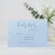 Pastellblåfärgat bröllopsinbjudan med personlig namn på baksidan. Den här designen finns också i andra färg i min butik. Klicka på knappen "Anpassa" för att anpassa inbjudan. Du kan också klicka på länken "Klicka för att anpassa ytterligare" för att ändra texten, inklusive typsnitt, storlek och färg. Matchande objekt finns i min butik. Klicka på knappen "Kontakt" om du behöver hjälp med att anpassa eller om du inte kan hitta det du är tittar för.