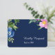 Svarskortet ram i söt blommigt bröllop användor ett blått, violett, grönt och rosa färg över en mörk marin blå bakgrund. Den har en vit anpassningsbar i nedre högerna grund. Den översta högerna och den lämnat har den ljusa och färgstarka blommigten gräns. Baksidan av inbjudan är solid light blue, som gör det enkelt för svaranden att markera, med anpassningsbarna mörk blått. Se till att se matchande bröllopsinbjudningar och andra bröllop-produkter i vår butik.