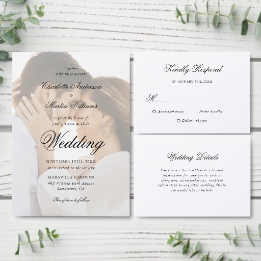 bröllop OSA för svart och vit elegant med ett elegant-skript. Utformning av perfekt-kort som komplement till den svarta och vita bröllopsfesten. Matchande objekt är tillgängliga.