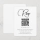 Det här moderna svarskortet i bröllop har ett ställe för din QR-kod så att gästerna enkelt kan osa på din bröllop webbplats. Framsidan har en enkel och ren svart- och vit design med trendigets skripttypografi. Minsta ryggstödet är helt vitt.