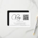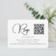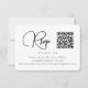 Det här moderna svarskortet i bröllop har ett ställe för din QR-kod så att gästerna enkelt kan osa på din bröllop webbplats. Framsidan har en enkel och ren svart- och vit design med söt skript med text. Minsta baksidan är solid svart.