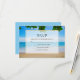 Bröllop OSA med ett landskapsfoto av en tropisk strand. Vit sand, azure vatten och blå himmel med tropiska löv längs toppen.