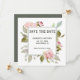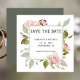 Bröllopet Spara datumet Rosa rosor som är utformade med mjuk vattenfärgsflordesign av rosa rosor och gröna accenter. Texten innehåller: Spara datum, brickans och rummets första namn, bröllopsdatum, plats och formell inbjudan att följa. Den omvända sidan är en motsvarande grön bakgrund. Om du vill anpassa dig infogar du dina uppgifter i vår lättförståeliga mall och ersätter exempeltexten. Finns i både utskrift och hämtning.