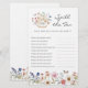Låt din speciella dag blomstra med detta Bröllopsspel, "Spill The Tea"! Denna design har fantastiska handmålade akvarellblommor i nyanser av djup lila, dammig blå och rosafärgad med salvia grönska. Oavsett om du är värd för en trädgårdsfest eller en mysig, intim sammankomst, kommer denna vackra bröllopsdusch "Spill The Tea" speldesign att ge en speciell touch av charm till din händelse. Hitta kompletterande produkter i Watercolor Wildflower Tea Party Bridal Shower.