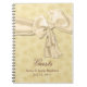 Älskvärd spiral anteckningsbok som göras i en blek - gul blom- bakgrund. Diagram av en satäng tittar blek - gult band och pilbåge, elasticiteter över mittet. Brun text som är längst ner läser gäster. Personifiera texten för att läsa vad du önskar. Gästen för eleganten undertecknar lite i boken för ditt bröllop.