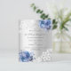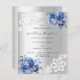För en elegant och ett romantiskt bröllop. En faux silver tittar bakgrund som dekoreras med blå blommigtar, ro och vit snöre. Anpassa och lägg till namn och information. 1 lakan = 1 inbjudan tryckt kant till kant.
