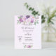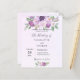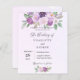 En violett, lavender färgad bakgrund. Dekorerad med violett och lila vattenfärgade blommor. Anpassa och lägg till information om namn och party. 1 lakan = 1 inbjudan tryckt kant till kant.
