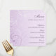 Bröllopmålmenyn i elegant lavendel virvlar runt mönster, specificerar anpassadet med ditt och tillgängligt, i att matcha bröllopprodukter.