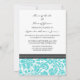 Bröllopsmottagningskort för separat mottagning i elegant och contemporary turkosa ljus himmel blå, svart och vit elegant och chic klassisk blommigt vintage mönster. Anpassa dessa inbjudningar med din bröllop-information till inbjudan dina gäster till firande efter ett privat bröllop eller ett målbröllop. Finns i matchande produkter för alla dina bröllop behov.