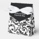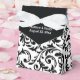 Den här eleganten har en blommigt-snurrningsdammdesign. Svartvitt ger en formell beröring. Anpassa de här favoritrutorna med namn och bröllop-datumet. Dessa favoritrutor fungerar också bra för möhippa party.