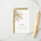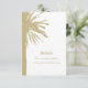 Bröllopskort för små lodräna på stranden med handflatan träd tryckt på chic. Tropisk designmall med utskrift på två sidor. Underbar för sommarbröllop och exotiska destinationsbröllop. Du kan ändra paletten färg.