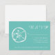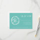Elegant turkos och OSA-bankkort. En del av en sanddollartematuppsättning. Ge kan dina gäster svara om de kommer till elegantens strandbröllop på sommaren. Den här designen går hand i hand med bröllopsinbjudningarna. Anpassade och papper kvalitet. Chicens skripttypografi. Konstruktion för rutttropiska destinationer för giftermål i june, juli, augusti, september osv.