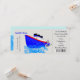 Nautisk grafik med kryssningsfartyg ankar och havsvågor precis vad som behövs för ett bröllop på ett kryssningsfartyg eller kanske på stranden vid en destinationshamn. Redigera bara texten för att passa dina bröllopsdetaljer på denna inbjudan i stil med en ombordstigningsbiljett. En rolig och ny men ändå stilren design.