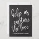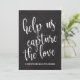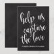 En elegant och modern bröllopsskrift med texten "Hjälp oss fånga kärleken" i en utåtriktad typsnittsstil, borststrukturen ger en spontan och lekfull känsla. Bakgrundsfärgen kan anpassas enligt dina behov och önskemål, kontaktar mig om du har några speciella önskemål.