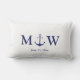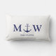 Bröllops nautisk ankar marinblå vit monogram lumbarkudde