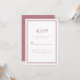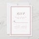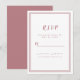 Enkel och elegant bröllops-svar inklusionskort med en minimalistisk design med en dubbel ramkant i trendig dammig rosa på en krispig vit bakgrund. Anpassa med datumet för ditt bröllop. Utrymme finns för dina gäster att lägga till sina namn och svar för en återkommande svar. Bokstäver och typsnitt är i matchande dammig rosa. Baksidan av kortet är i matchande enfärgad dammig rosa.