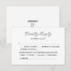Vår bröllops-svarskort är det perfekta tillägget till din moderna bröllopsinbjudan. Med sin snygga design och eleganta enkelhet kommer detta kort säkert att ge ett varaktigt intryck på dina gäster. Med orden "Vänligen svara" elegant utformade i ett elegant skrivsätt, förmedlar dessa svarskort en känsla av sofistikering och förfinad smak. Dina gäster kommer att vara förtrollade av den romantiska typografin medan de uppskattar den moderna vridningen som det ger till din brölloppspapper. För att säkerställa att alla blir tillfredsställda, ger våra svarskort också utrymme för menyalternativ. Detta genomtänkta tillägg gör det möjligt för dina gäster att ange sina måltidsalternativ, vilket gör det enklare för dig att planera en njutbar kulinarisk upplevelse på din speciella dag. Inte bara utstrålar dessa bröllopssvarskort charm och elegans, utan de erbjuder också praktiskhet och effektivitet när det gäller att hantera din gästlista. Genom att tillhandahålla ett för-adresserad returkuvert kommer dina gä
