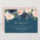 Dessa bröllopsannonser med rosafärgade och marina blommor har en vacker blomsterdesign. Den klassiska och eleganta designen har moderna akvarell marina blå och rosafärgade blommor på en tealblå bakgrund. Anpassa kortet med dina bröllopsdetaljer och använd mallsektionen på baksidan för information om mottagningen, för att meddela en adressändring eller för andra detaljer du vill dela.