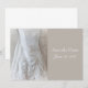 Spara datum bröllopsannons med foto av bröllopsklänning.