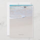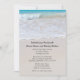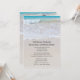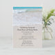 Anpassningsbar bröllopsannonsering med text skriven i sanden. Detta är också en inbjudan till mottagning för nygifta. Anpassa all text som skrivs ut över slät sand med vågor som rullar in från den turkosa havet som bakgrundsbild.