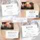 Elegant elopement eller privat bröllopsinbjudan. Framsidan visar ditt foto i en välvd ram och "Lyckliga För Evigt Fest" i klassisk serif-typografi. Under ditt foto kan du lägga till dina förnamn, bröllopsdatum och plats. På baksidan kan du anpassa ditt meddelande mer detaljerat och lägga till fest- eller mottagningsdetaljer och era namn i ett signaturliknande skrivsätt.