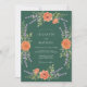 Denna design har en frodig, cirkulär arrangemang av livfulla apelsinblommor och mjuka lavendelkvistar. Den botaniska kransen skapar en inbjudande och romantisk atmosfär, perfekt för en charmerande fest. En lugn grön bakgrund förstärker den naturliga skönheten hos floran.