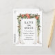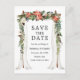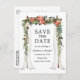 Elegant Bröllopsbaldakin Vattenfärg Poinsettia Blommig Foto Rädda Datum Kortet innehåller röda julstjärnor, vita rosor, kottar och botanisk grönska. Paret Foto.